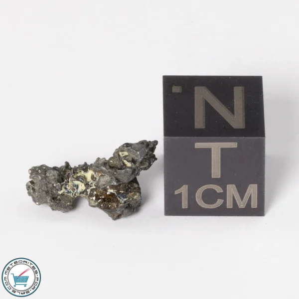 Not all olivine crystals in the Admire meteorite are shocked which is rare and has been found in only a few pallasite meteorites. This has allowed for the crystals of Admire to be faceted into cosmic peridot gemstones. The Admire crystals being sold here were extracted from the meteorite during the process of finding stones suitable for faceting. Some have remaining bits of meteoritic metal still adhering to them while others are crystals only. Only about one crystal in one hundred was found to be crack free enough to facet. Our supply of meteorite peridot crystals is quite limited. They will make a wonderful addition to any meteorite or mineral collection.