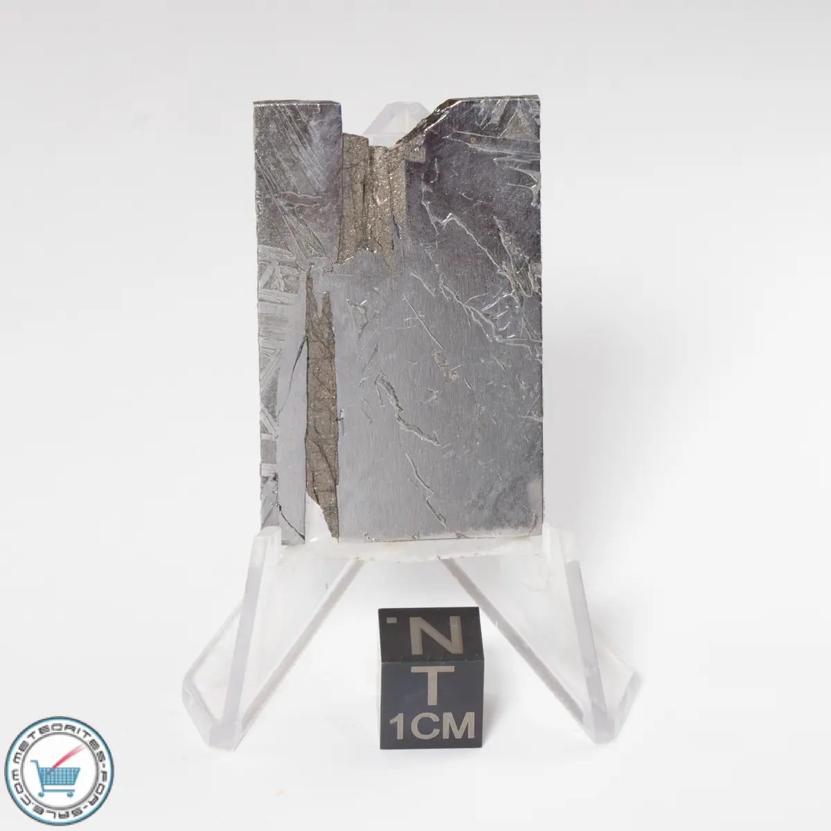 Aletai meteorites are commonly seen as slices, and can feature inclusions of troilite and schreibersite. Aletai crystals often take on fantastical, angular shapes. Individuals of Aletai typically have a shiny, gunmetal finish. These iron meteorite are made up of nickel and iron and crystallized from a melt. Aletai’s gold and iridium content is also much higher than the other IIIE irons, of which there are currently 19.