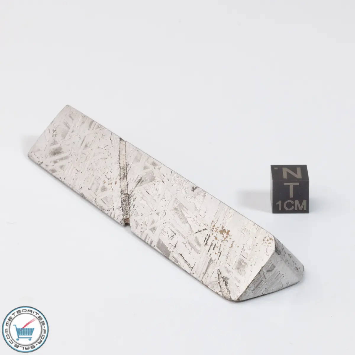 Aletai meteorites are commonly seen as slices, and can feature inclusions of troilite and schreibersite. Aletai crystals often take on fantastical, angular shapes. Individuals of Aletai typically have a shiny, gunmetal finish. These iron meteorite are made up of nickel and iron and crystallized from a melt. Aletai’s gold and iridium content is also much higher than the other IIIE irons, of which there are currently 19.