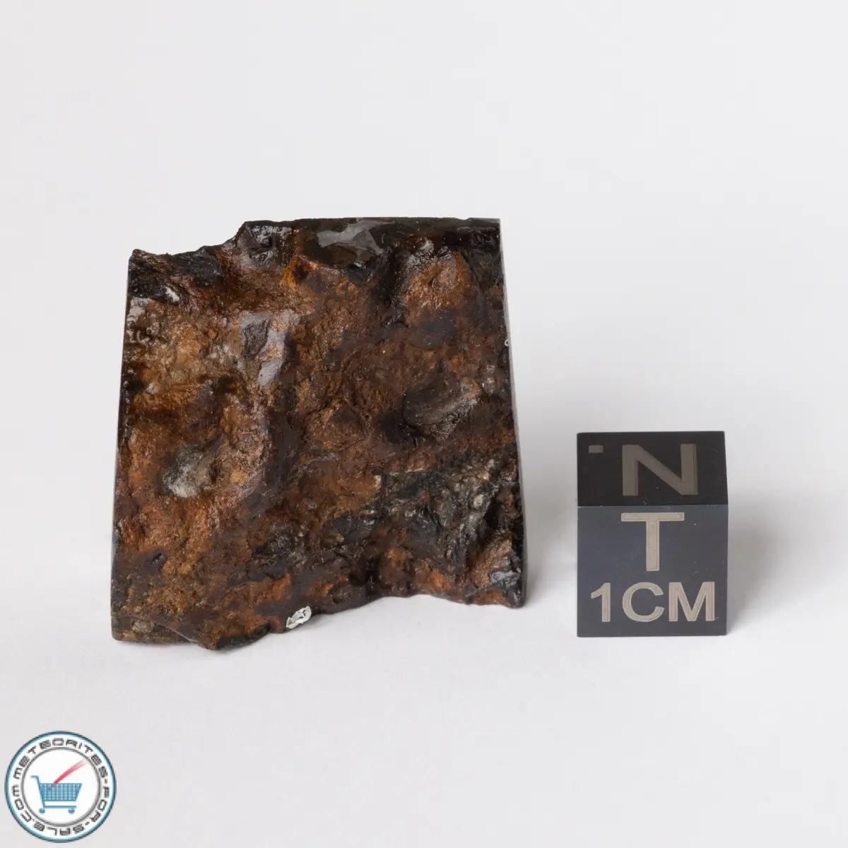 Brahin is a main group Pallasite with angular olivine crystals colored and darkened by terrestrial weathering. It is an attractive meteorite none the less and makes a fine addition to any collection.
