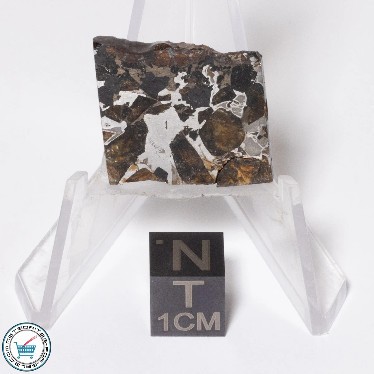 Brahin is a main group Pallasite with angular olivine crystals colored and darkened by terrestrial weathering. It is an attractive meteorite none the less and makes a fine addition to any collection.
