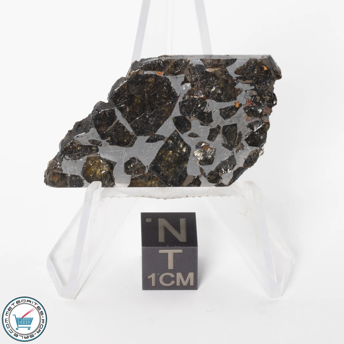 Brahin is a main group Pallasite with angular olivine crystals colored and darkened by terrestrial weathering. It is an attractive meteorite none the less and makes a fine addition to any collection.