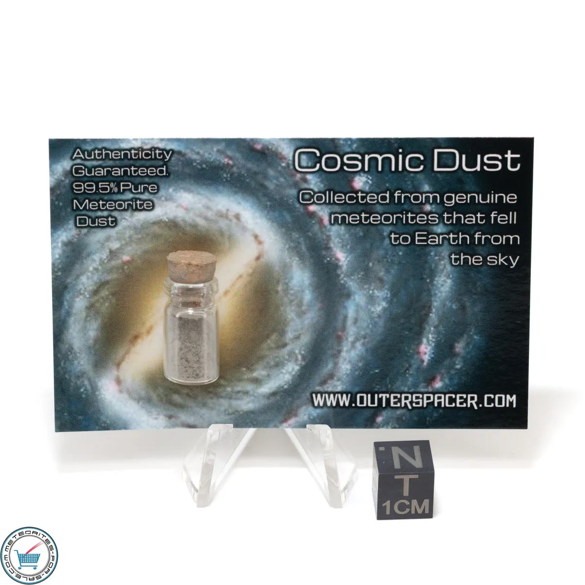 Guaranteed authentic meteorite dust is collected when larger meteorites are cut into slices. These vials, presented on a high-quality laminated display card, contain dust from a variety of stone meteorites.