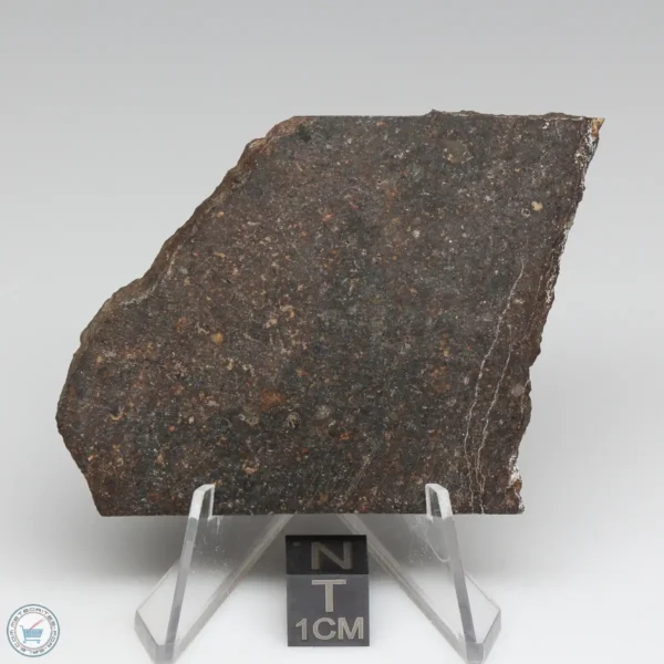 Dhofar 1289 is slightly shocked receiving an S2 state when classified. Little metal shows in cut slices. The meteorite has an attractive color and interesting features when prepared and polished. Chondrules are easily visible on slices and vary in size with occasional chondrules approaching 5mm in diameter.