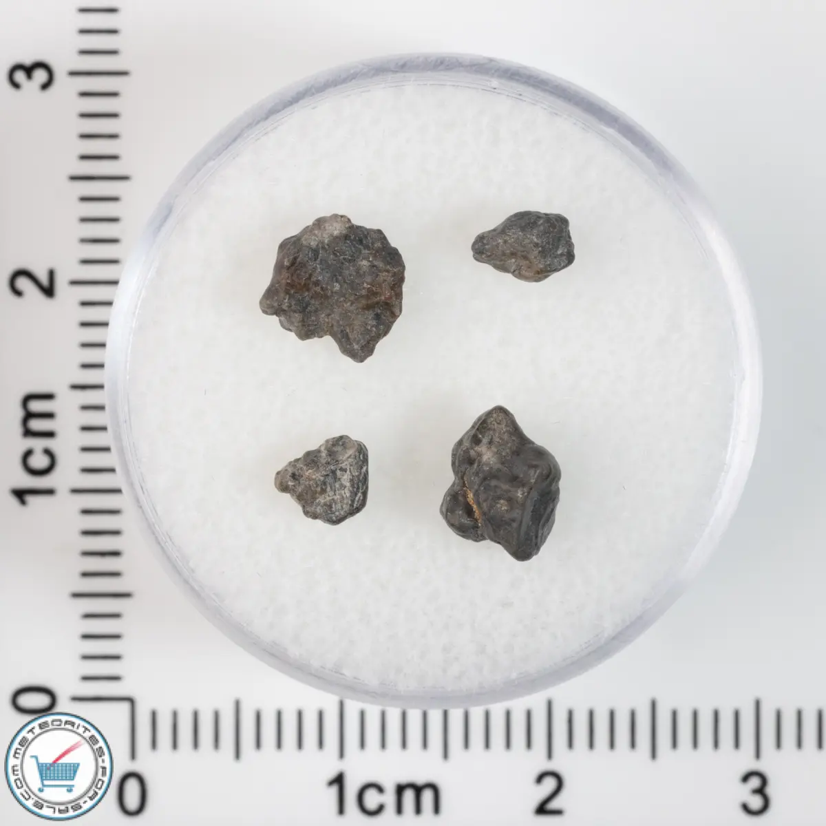 No fusion crust was seen on the meteorites which have an overall gray colored exterior with some whitish clasts showing. The Laâyoune 002 lunar meteorite is both attractive and more affordable than most lunar meteorite specimens.