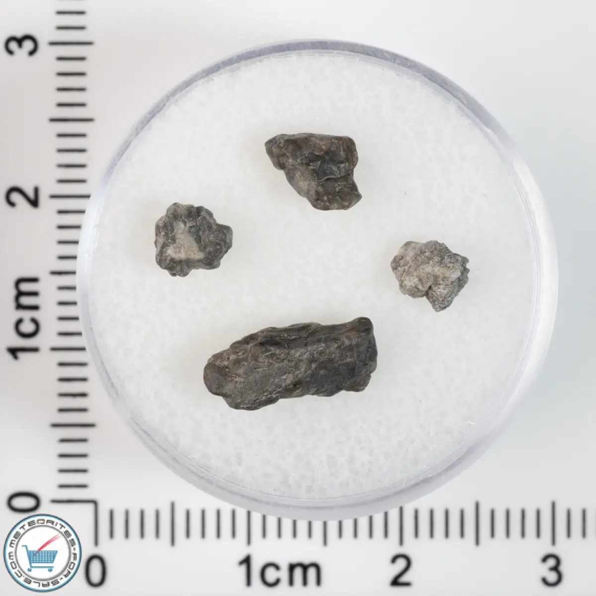 No fusion crust was seen on the meteorites which have an overall gray colored exterior with some whitish clasts showing. The Laâyoune 002 lunar meteorite is both attractive and more affordable than most lunar meteorite specimens.