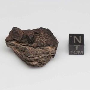 Mundrabilla Shale is a layered weathering product of the Mundrabilla iron meteorite. Mundrabilla was first found on the Nullarbor Plain of Australia in 1911. After that original discovery many more masses of the iron meteorite were located in the same area decades later. Over a long period of time a thick coating of hard altered iron material forms on iron meteorites as they weather on Earth. Eventually this layered material exfoliates off the mass and is found in the soil near the meteorite. Mundrabilla shale is somewhat distinctive from other iron shales because of the thinness of the layers seen in some pieces. Like other iron shales from meteorites found elsewhere on Earth tiny specks of shiny iron metal can sometimes be seen when the shale is cut or ground.