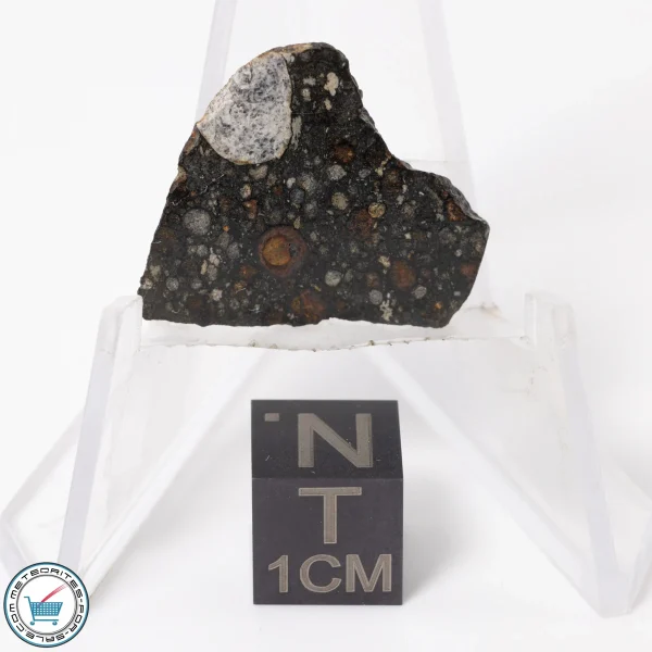 The NWA 11343 meteorites have a dark, sandblasted exterior. When sliced with a saw, the interior of the meteorite reveals chondrules and some small CAIs. NWA 11343 also contains nickel-iron metal, troilite, and oxidized iron.