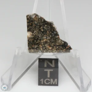 The NWA 15656 meteorite is a HED type achondrite classified as a Polymict Eucrite. One stone of 700 grams was recovered and purchased in 2021. The cut surface of NWA 15656 reveals a breccia of scattered light and brown colored clasts set in a matrix that is gray in color.