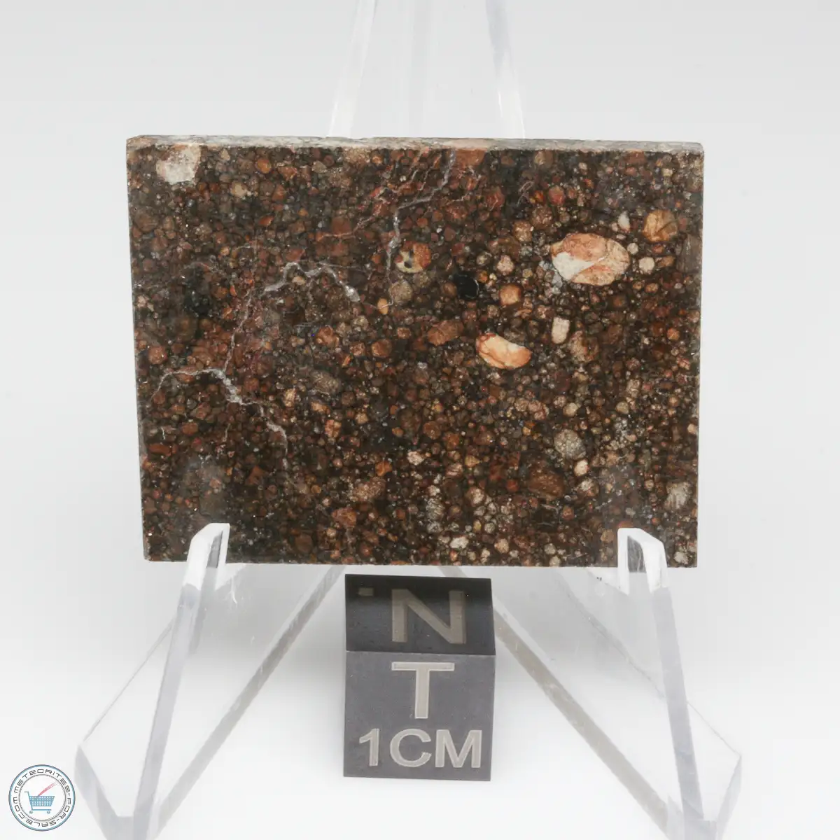 NWA 15662 has a weathered exterior with some stones showing patches of smooth fusion crust. Cut surfaces of NWA 15662 reveal dense packed large chondrules some up to 4 mm in diameter. NWA 15662 has a low shock stage of S1 and is a bit weathered with a weathering grade of W2.