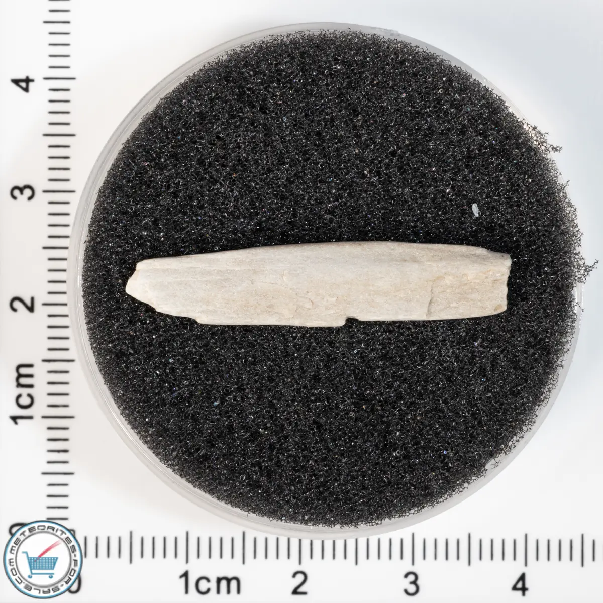 Sebkha el Melah meteorites have a unique appearance. They often present as white shard-like stones. Large specimens have jagged angles and even contain translucent, gummy enstatite crystals. SEM 001 is unbrecciated and some specimens have a unique white fusion crust, though some specimens do exhibit darker-colored fusion crust.