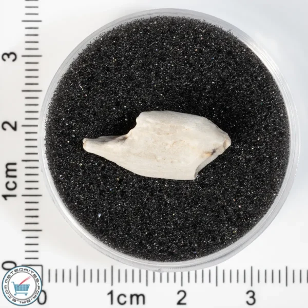 Sebkha el Melah meteorites have a unique appearance. They often present as white shard-like stones. Large specimens have jagged angles and even contain translucent, gummy enstatite crystals. SEM 001 is unbrecciated and some specimens have a unique white fusion crust, though some specimens do exhibit darker-colored fusion crust.