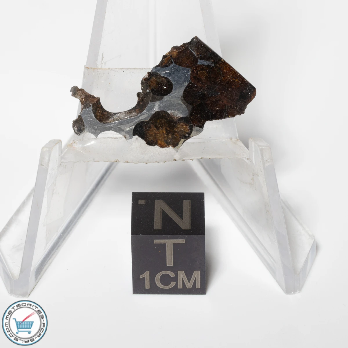 The Sericho pallasite meteorite was purchased in 2017 in Isiolo County, Kenya. These Sericho pallasite meteorite part and full slices are etched and display beautiful olivine crystals. The olivine crystals of Sericho are generally rounded and vary in color from gemmy green to orange. The metal-rich areas of the Sericho pallasite show well-developed Widmanstätten patterns. The olivine crystals in these slices vary from light to dark but are not transparent.