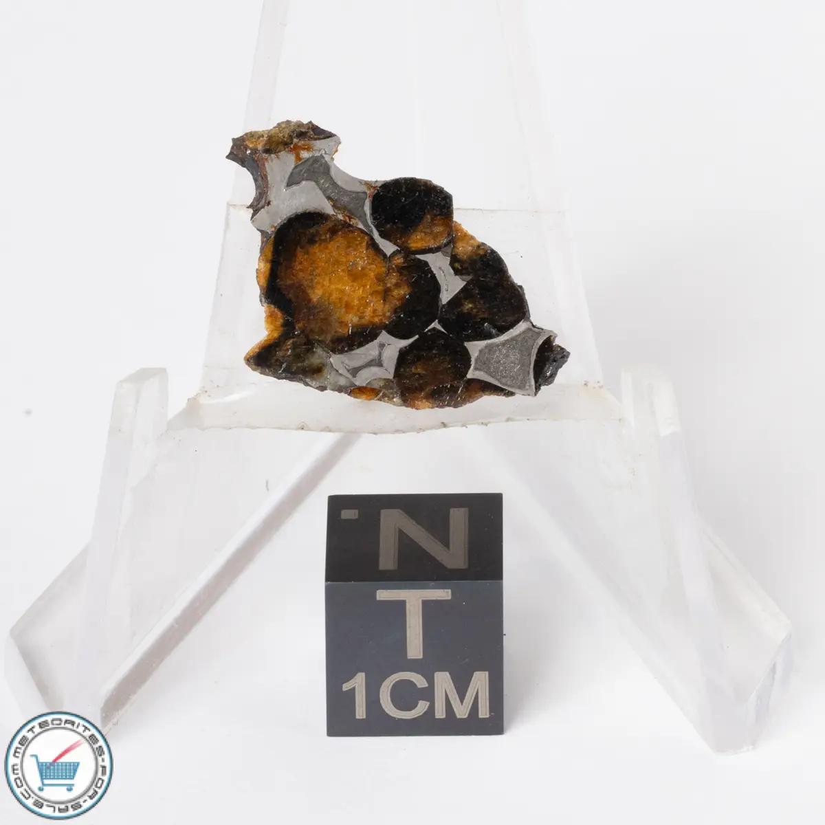 The Sericho pallasite meteorite was purchased in 2017 in Isiolo County, Kenya. These Sericho pallasite meteorite part and full slices are etched and display beautiful olivine crystals. The olivine crystals of Sericho are generally rounded and vary in color from gemmy green to orange. The metal-rich areas of the Sericho pallasite show well-developed Widmanstätten patterns. The olivine crystals in these slices vary from light to dark but are not transparent.