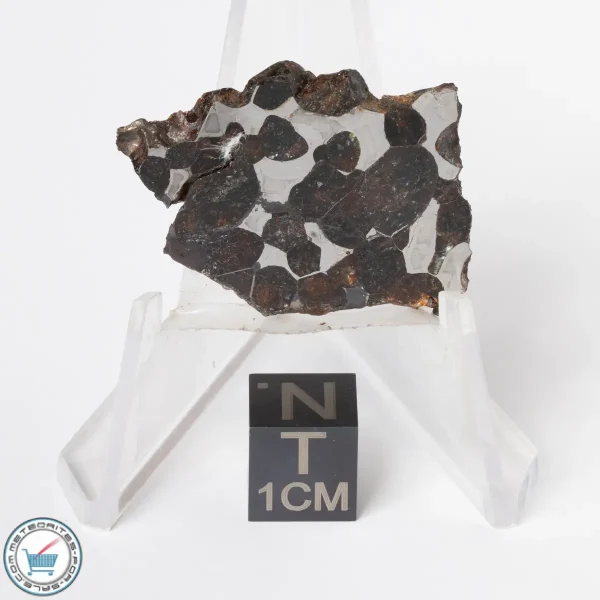 The Sericho pallasite meteorite was purchased in 2017 in Isiolo County, Kenya. These Sericho pallasite meteorite part and full slices are etched and display beautiful olivine crystals. The olivine crystals of Sericho are generally rounded and vary in color from gemmy green to orange. The metal-rich areas of the Sericho pallasite show well-developed Widmanstätten patterns. The olivine crystals in these slices vary from light to dark but are not transparent.