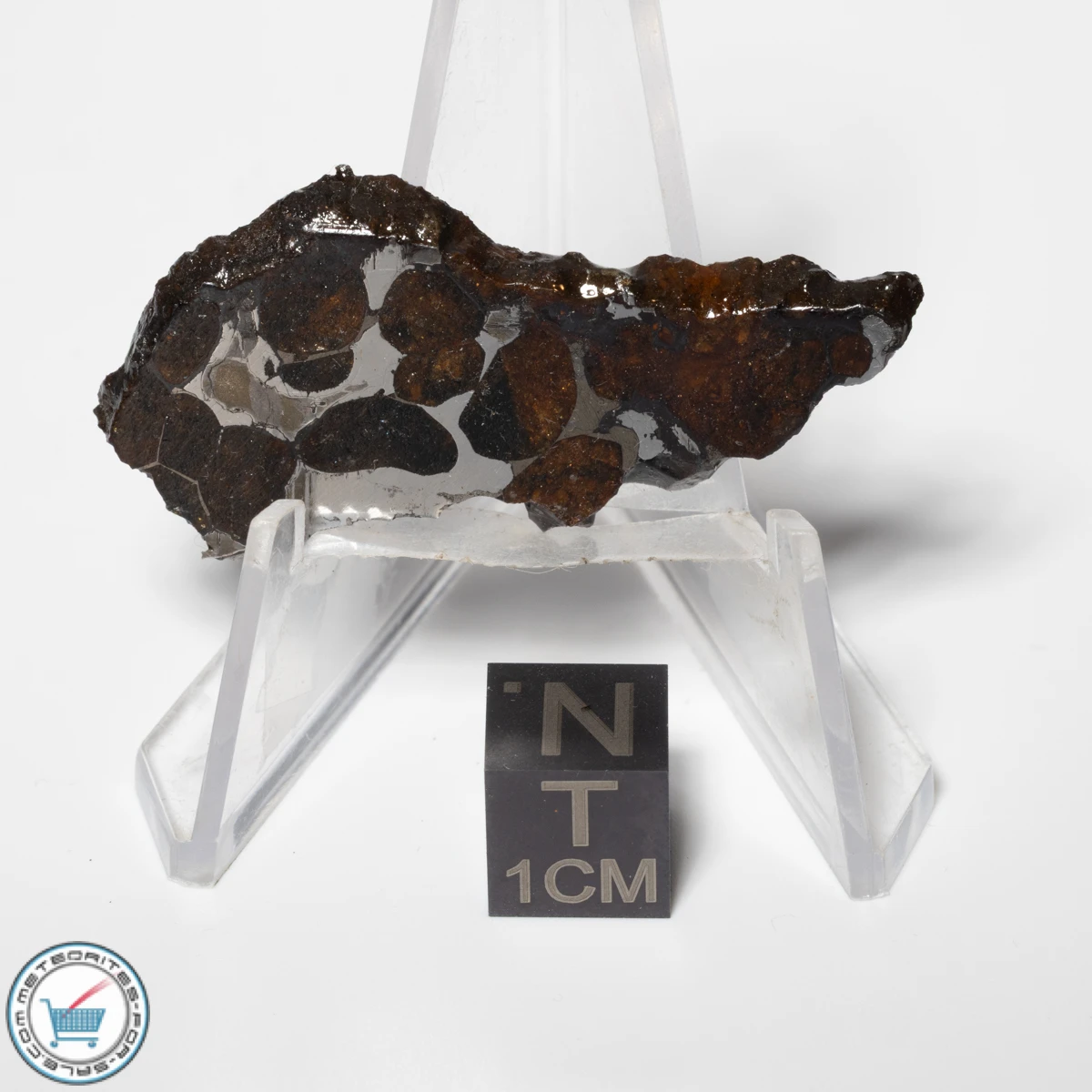 The Sericho pallasite meteorite was purchased in 2017 in Isiolo County, Kenya. These Sericho pallasite meteorite part and full slices are etched and display beautiful olivine crystals. The olivine crystals of Sericho are generally rounded and vary in color from gemmy green to orange. The metal-rich areas of the Sericho pallasite show well-developed Widmanstätten patterns. The olivine crystals in these slices vary from light to dark but are not transparent.