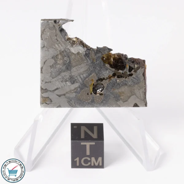 The Seymchan meteorite was found in 1967 in Magadanskaya oblast’, Russia. These Seymchan meteorite part slices display beautiful olivine crystals.