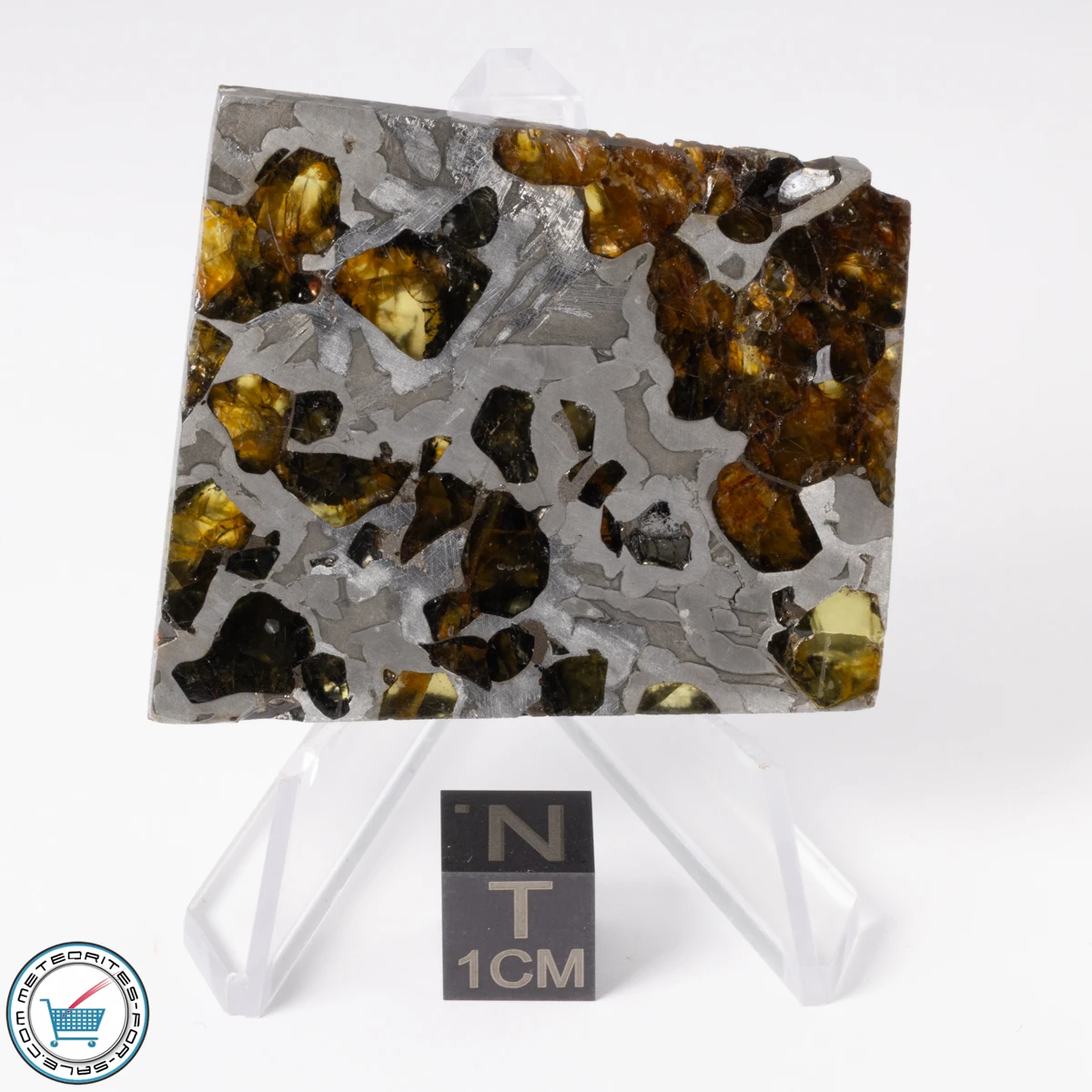 The Seymchan meteorite was found in 1967 in Magadanskaya oblast’, Russia. These Seymchan meteorite part slices display beautiful olivine crystals.