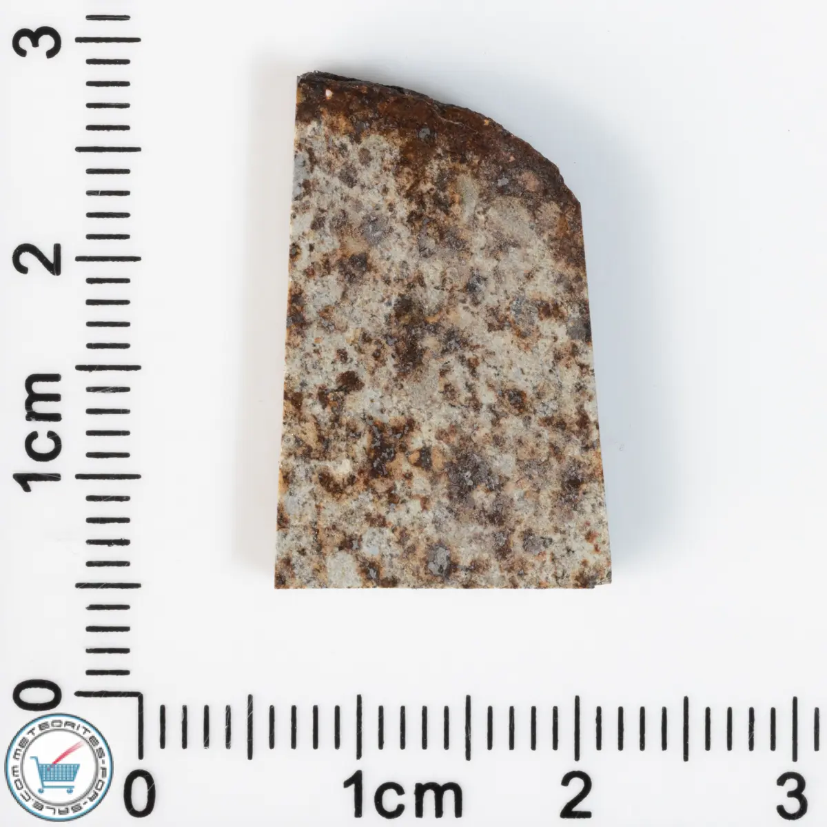 Tank Mountains meteorites have some remnant fusion crust and is described as angular, with broad regmaglypts. The interior of Tank Mountains meteorites are orange-stained and reveal small metal grains and some discernible chondrules. Thin shock veins are also visible in slices of this meteorite.
